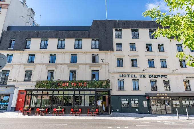 | Hôtel de Dieppe 1880 | Proche gare | 13- 28 m², clim, WiFi, non-fumeur | Restaurant sur place, bar, espace coworking | dès 110€/nuit | 4,2/5 | Très bon |