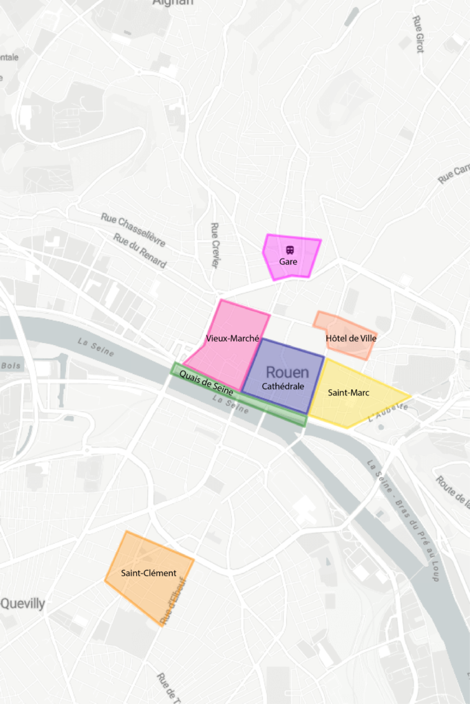 D’abord, tout mes quartiers préférés se situent rive droite. Non pas que je n’aime pas certains quartiers rive gauche (quoique) mais pour un séjour optimisé à Rouen, les meilleurs quartiers se situent dans le centre de la ville ou à proximité. C’est pour cette raison que je recommande toujours les quartiers du centre-ville (cathédrale), le quartier du Vieux-Marché, le quartier Saint-Marc avec sa petite ambiance village notamment le dimanche avec son marché et ses bistrots ouverts.